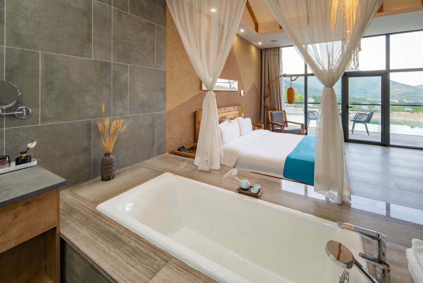 Cloud Mist Double Bed Room With 2nd Floor Lake-View Outdoor Balcony + Private Bathtub + Infinity Pool